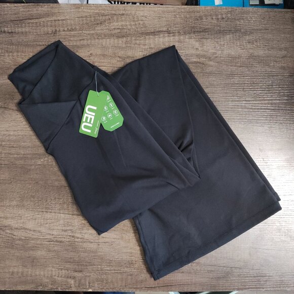 Brand new with tags UEU dark gray flare athletic leggings in size Large. Features a high waisted design with V-crossover detail and flattering flare leg silhouette. Made from premium 75% nylon and 25% spandex blend for ultimate stretch and comfort. Perfect for yoga, workouts, or casual athleisure styling.