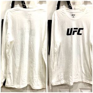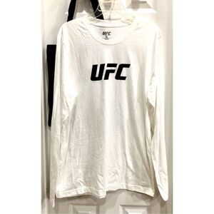 UFC Licensed Logo Fitted Long-Sleeve Tee in men's size LARGE. Basic and clean, this is a white, fitted, long sleeve T-shirt with the black UFC logo on front. 100% cotton, so machine wash (cold) and tumble dry (on low). It has a crewneck and no gathered cuffs or band on hem. The pit-to-pit measurement is 22" (without stretching, the length is 31" and the sleeves are 28". This comes with a free UFC tote bag as shown in photos. Nice gift and NWOT!