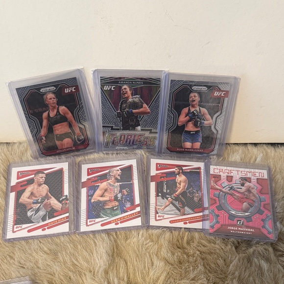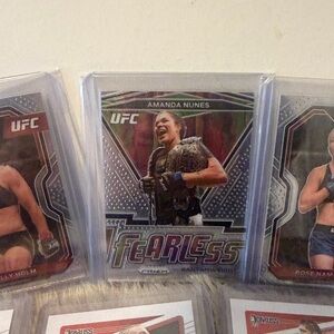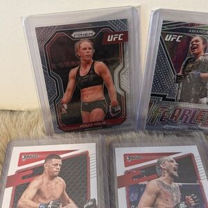 Bundle of 7 cards Collection of UFC trading cards featuring various fighters. Includes dynamic designs and vibrant colors.