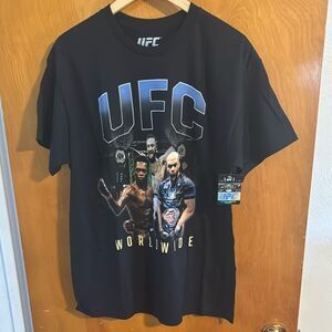 This is new with tags. The colors is black. The fabric is 100% cotton. The chest is 44 inches, 22 flat. The length is 29 inches.