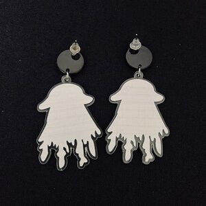 UFO. “Get in Loser” dangle earrings with design on one side and black studs