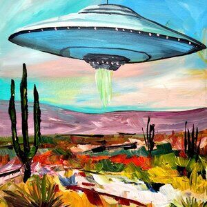 UFO Spaceship Landscape Desert 16x20 Original Handmade Painting Wall Fine Art