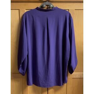 UG Apparel TCU Blouse XL Womens Purple Embroidered White Roll Up Sleeves