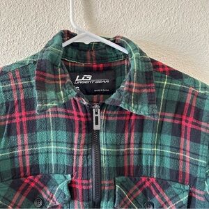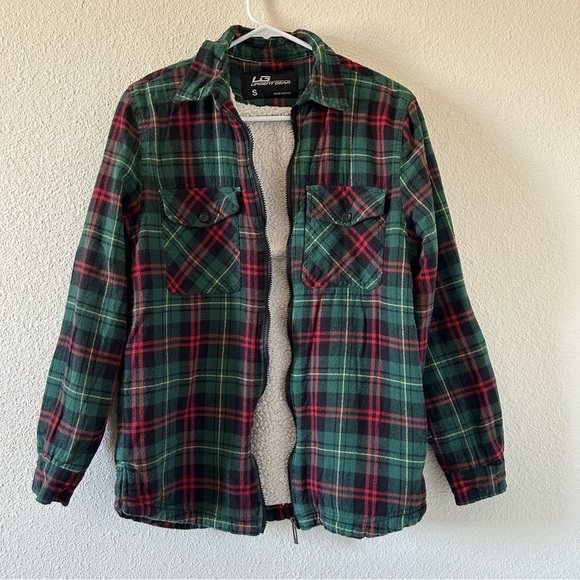 UG Urgent Gear Women’s zip Front Flannel Shacket Sz Small Green Red Quilted Shearling Lined in great condition/ slight wash fade/ double front chest pockets