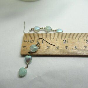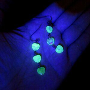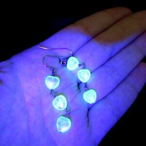 This listing is for the UG Czech glass bead earrings pictured. They were made by me using UG Czech AB coated heart shaped beads. The beads in these earrings glow under blacklight due to the Uranium used in making and coloring the glass. They hang from surgical steel earwires.