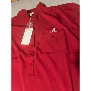 UG Apparel Womens Red Half Cuffed Sleeve Collared Button Up Blouse Top Size 1X