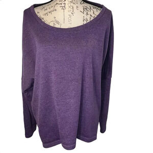 UGET,2XL, purple oversize stretchy 3/4 batwing rounded high low hem boho tunic