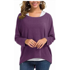 UGET,2XL, purple oversize stretchy 3/4 batwing sleeve rounded high low hem boho tunic