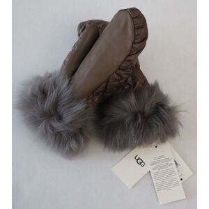 UGG 17413 Women's Sz S/M Gray Genuine Leather Palm Quilted All Weather Mittens