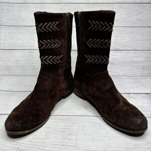 UGG 3182 Cailyn Distressed Brown Suede Upper Leather Side Zip Boots women's sz 9