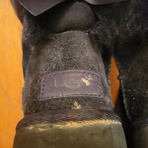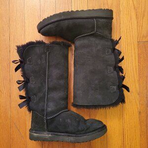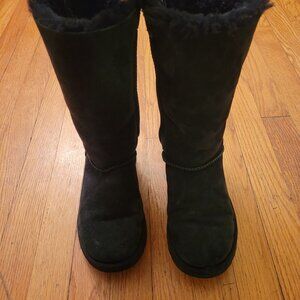 UGG 5 Black Suede Leather Sheepskin BAILEY BOW II Tall Boots