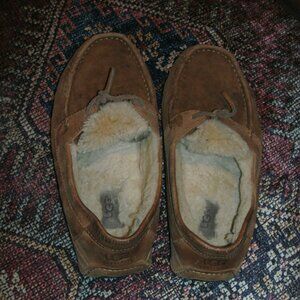 UGG 5102 Byron Chestnut Brown Suede Sheepskin Lined Slip On Slippers size 9