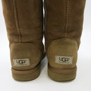 UGG 5815 Classic Tall Insulated Boots Australia 7, They are here and just in time. We have about 150 UGG Boots that we are listing, keep an eye out for the Style and Size you are looking for. Insulated Winter Boots for the Cold that is upon us, you are sure to be Pleased. There is a lot of wear on this pair, nice Uppers on this pair. Soles have normal wear, looks like there is gum residue, and there are some spots, smudging, and fading on the uppers.