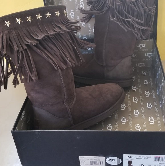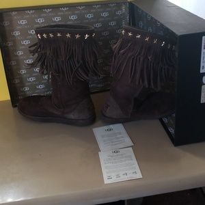Bad as moccasin boots with gold stars chocolate UGS by Jimmy Choo