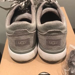 Gray suede Victoria UGG sneaker with spare laces