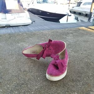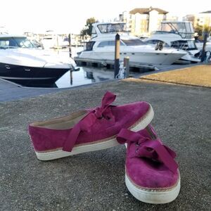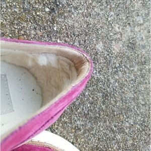 Absolutely gorgeous, fun color beautiful and comfortable shows little stain that is not so obvious. Worn a few times. Stunning in person.