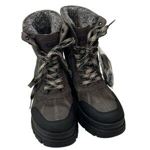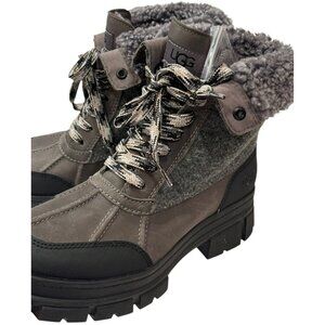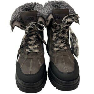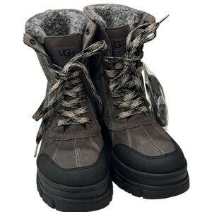 UGG 7.5 ASHTON ADDIE TIPPED SNOW BOOT GREY WATERPROOF FULL-GRAIN LEATHER WOMENS