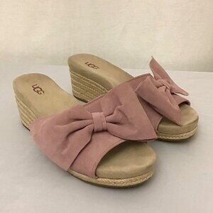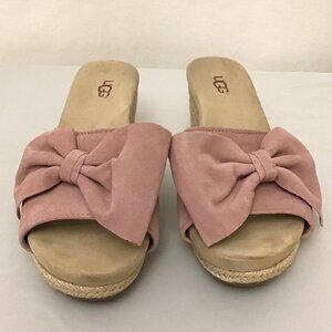 UGG 8.5 Jaycee Suede Rose Pink Bow Women’s Espadrille Wedge Sandals Shoes