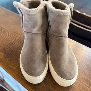 Soft suede and a little fuzz bring cozy warmth to this sneaker style. Wear the short silhouette with denim or off-duty layers.