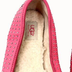 Fabulous pair of pink studded UGG leather flats! Comfortable and stylish slip-on flats with a luxurious shearling lining and silver stud embellishments for a touch of elegance.