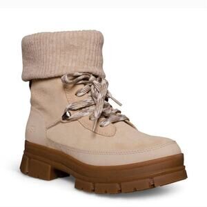 Keywords: UGG, YOSE Puff, Ankle Boots, Beige Boots, Suede Boots, Lace Up Boots, Chunky Sole, Lug Sole, Knit Collar, Winter Boots, Casual Boots, Comfort Boots