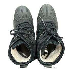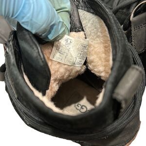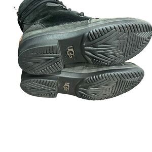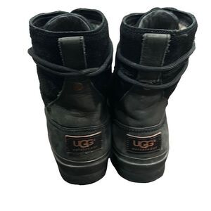 UGG AUSTRALIA Azaria Black Waterproof Suede Leather Rubber Sheepskin Winter Ankle Duck Boots Size 7.5