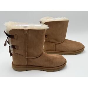 UGG AUSTRALIA SHORT BAILEY BOW II CHESTNUT SUEDE SHEEPSKIN BOOTS SIZE US 6 WOMEN