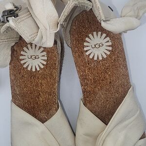 UGG AUSTRALIA Women's Creme Espadrilles Cork Wedge Sandals Shoe Size 7.5M
