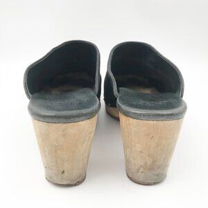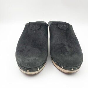 Ugg Abbie black suede clogs. Slip on, suede leather upper, wood heel, sheepskin fur lining, size womens 10, wear to wood heel, wear on inside fur lining-see photos. Smoke and pet free home.