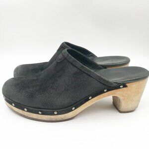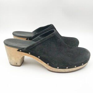 UGG Abbie Black Suede Leather Slip On Block Heel Studded Clogs Womens 10