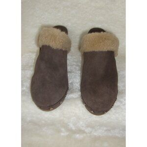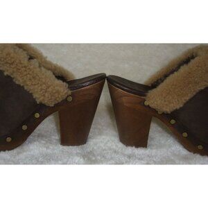 UGG Adele Brown Suede Sheepskin Studded Clogs Heels Mules Shoes Women Size US 7