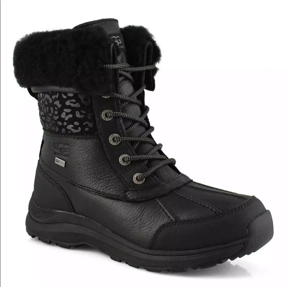 - UGG Adirondack III Snow Leopard Black Waterproof Leather And Suede Boots With Cuffable Shaft,