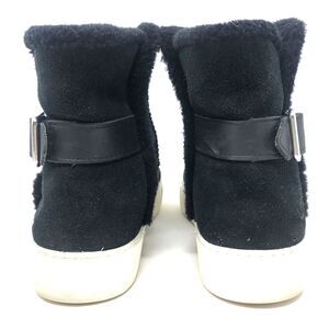 Casual UGG Aika Ankle Boot with side Buckle in Black Suede with Sneaker White Soles, Cozy Pure Sheep Wool Lining and EVA Footbed