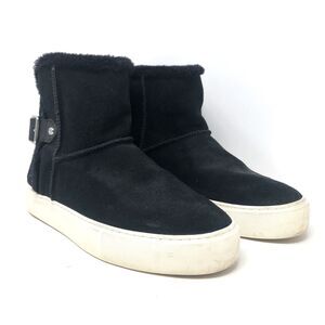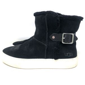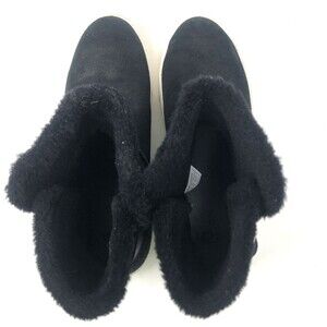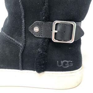 UGG Aika Ankle Boot Womens Sz 10 Buckle Black Suede Pure Sheep Wool Lining Cozy