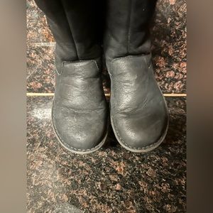UGG Australia "Akadia" round toe winter boots. Made from rich pebbled leather in accent luxe Sheepskin. Hand stitched outsole for all day comfort.