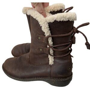 UGG Akadia Women's 9 Stout 1007760 Sherpa Lined Leather Boots Pull on Brown