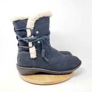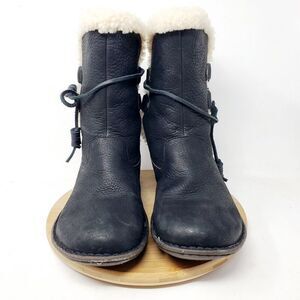 UGG Akadia Boots Women 9 Black Nubuck Leather Shearling Wrap Tie Winter Shoes