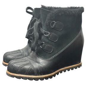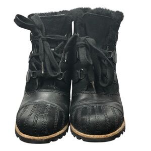 UGG Alasdair Wedge Fur lined Tie Booties Black Size 7 Comfortable Warm Cozy