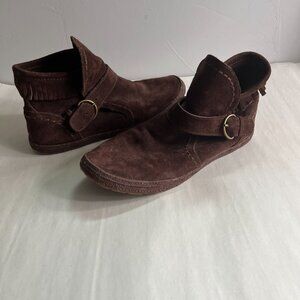 UGG Amely Dark Brown Suede Fringe Leather Moccasin Booties Size 8.5