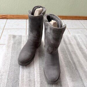 UGG Amie - Classic Slim Water Resistant Short Women's Boot. 8 1/2 M, Grey suede. Very good condition. Only worn in office setting.