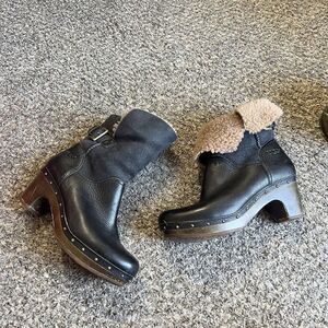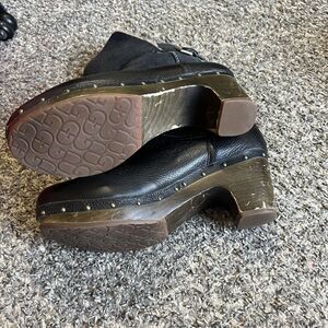 UGG Amoret Boots Black Leather Wooden Block Heel Womens Size US 10 Fold-over