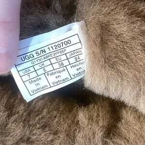 In excellent almost new condition. Probably only worn once. Sticker tag still on left shoe. They are real sheepskin outer and wool-lined. Size 7 (NOTE on the size: I normally wear a 6 in a boot, but I could wear these if I wanted to, especially with socks.) I was so tempted to keep them, but I just have so many pair of boots and nowhere to keep anymore. The wool is kind of moldable for a few different sizes, 5.5-7.