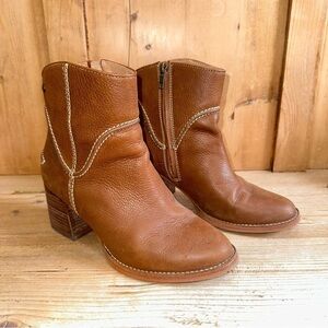 UGG Annie Chestnut Brown Tan Leather Heeled Ankle Booties Boots Western Size 7