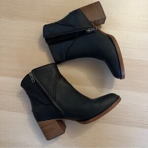 UGG Annie Leather Ankle Boot Black Stacked Block Heel Size 7.5