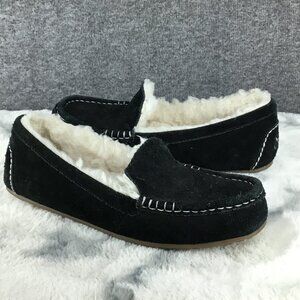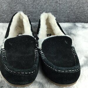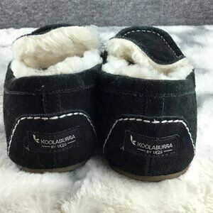 Cozy UGG Koolaburra black suede slippers with plush lining. Perfect for comfort and warmth. Genuine sheepskin.