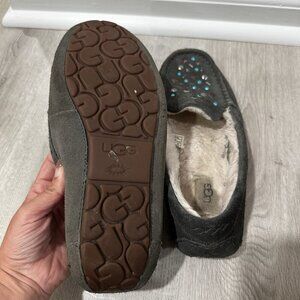 UGG Ansley Stud II Women's Moc Slippers Size 8 Gray Suede Sheepskin Slip On
