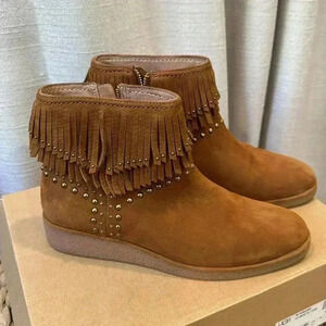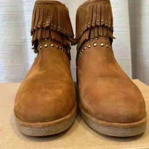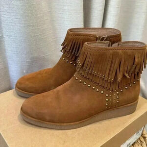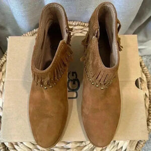 UGG Ariane Studded Fringe Western Style Ankle Boots -Chestnut Nubuck -size 8.5