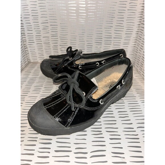 UGG Ashdale Duck Shoes Black Patent Leather Shearling Fur Lined 1901 US 6