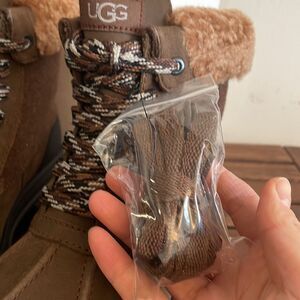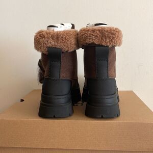 Combining the exaggerated lug sole of our Ashton with the unmistakable silhouette of our iconic Adirondack, this new weather boot gives you the best of both. Crafted from waterproof full-grain leather with sealed seams to help protect against light rain, it offers signature softness with our UGGplush™ wool blend and microfiber lining. Pair with all your favorite winter looks.