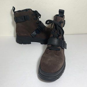 UGG Ashton Lace Up Boots Suede Buckle Combat Booties Burnt Cedar Brown Size 9